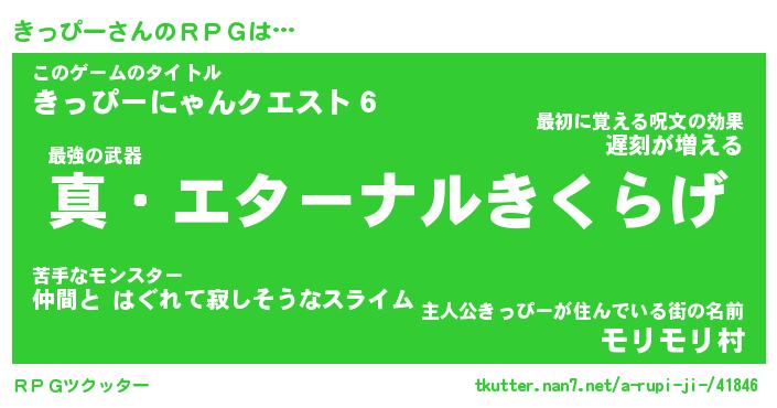 | ファンタジー風あだ名 | 『キッフェル』『エターナルキッピーー』 |