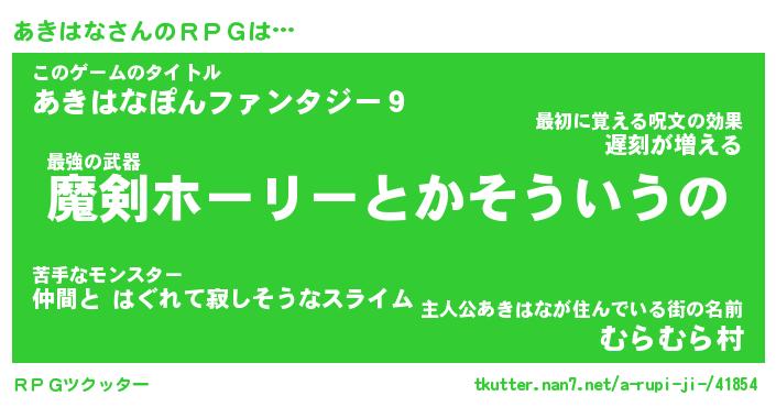 | 男性向けラノベタイトル風あだ名 | 『あきはなの憂鬱』 |