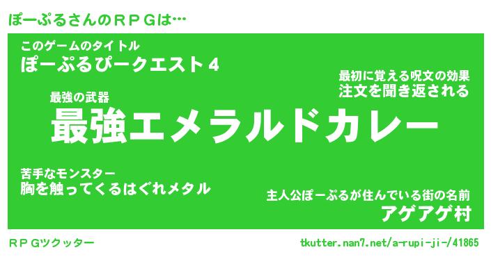 | 料理風あだ名 | 『節約★ぽーぷると油揚げの玉子丼』 |
