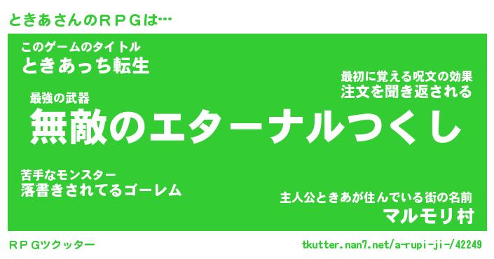 | 男性向けラノベタイトル風あだ名 | 『トキアアートオンライン』 |