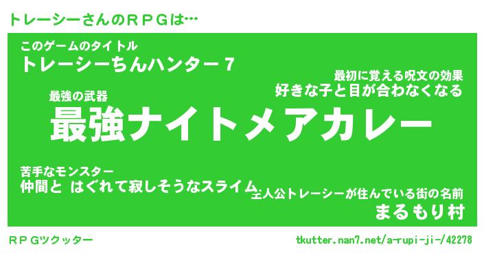 | 男性向けラノベタイトル風あだ名 | 『トレーシーアートオンライン』 |