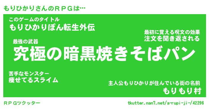 | 男性向けラノベタイトル風あだ名 | 『モリヒカリアートオンライン』 |