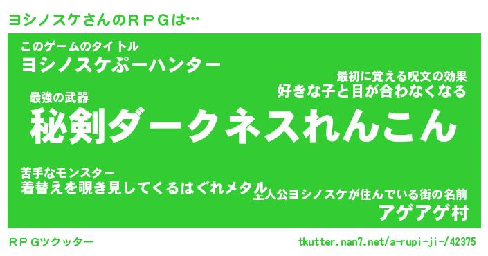 | ポケモン風あだ名 | 『ヨシチュウ』『ヨシノダネ』 |