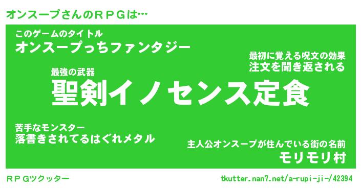 | 男性向けラノベタイトル風あだ名 | 『オンスープの憂鬱』 |