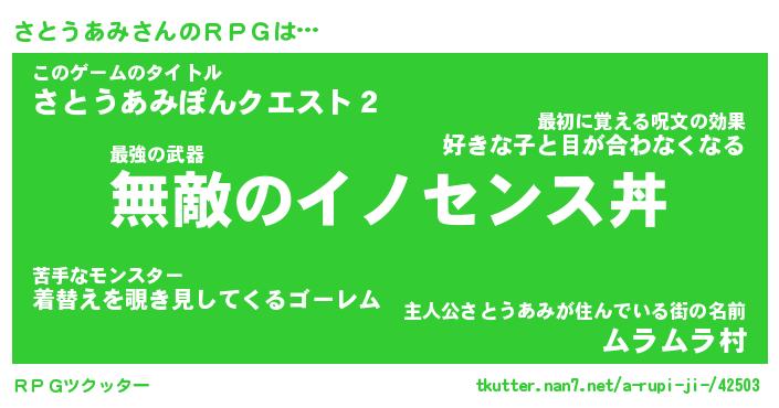| ヒーロー風カッコイイあだ名 | 『スーパーサトウアミ』『幻影騎士サト』 |