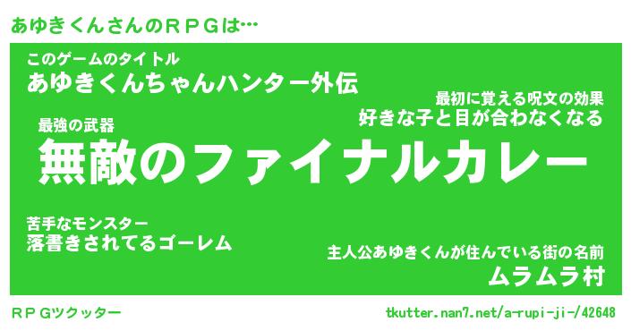 | 男性向けラノベタイトル風あだ名 | 『アユキクンアートオンライン』 |