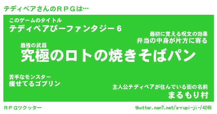 | ファンタジー風あだ名 | 『テデフェル』『エターナルテディベアー』 |
