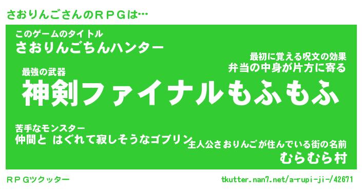 | 伝説のあだ名 | 『不死鳥の傭兵さおりんご』 |