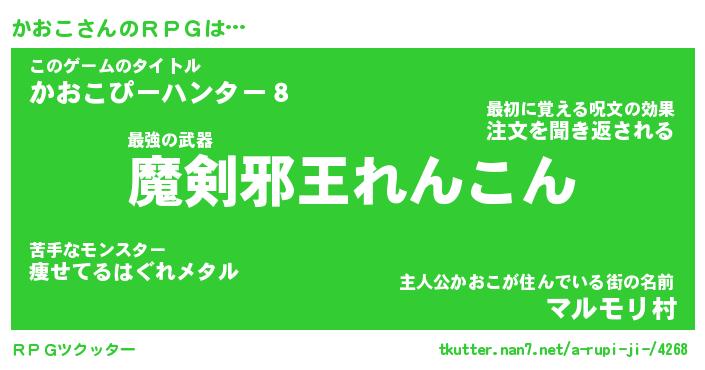 | 伝説のあだ名 | 『伝説の傭兵かおこ』『最強の忍者かおこ』 |