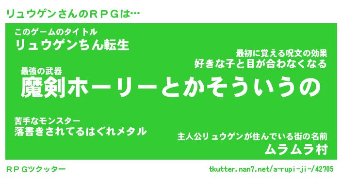| 男性向けラノベタイトル風あだ名 | 『リュウゲンの憂鬱』 |