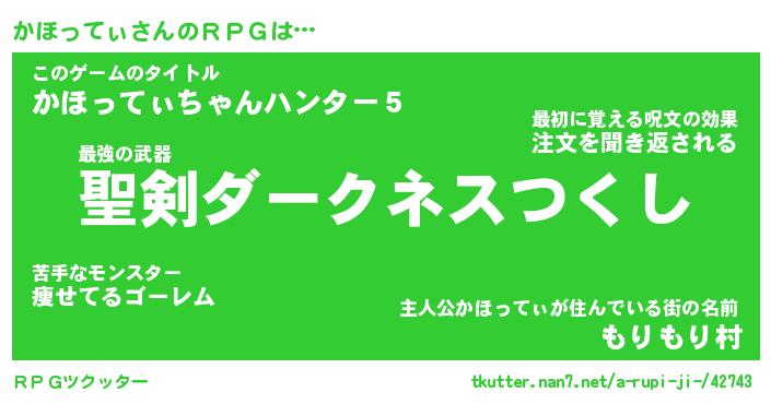 | 伝説のあだ名 | 『伝説の傭兵かほってぃ』 |
