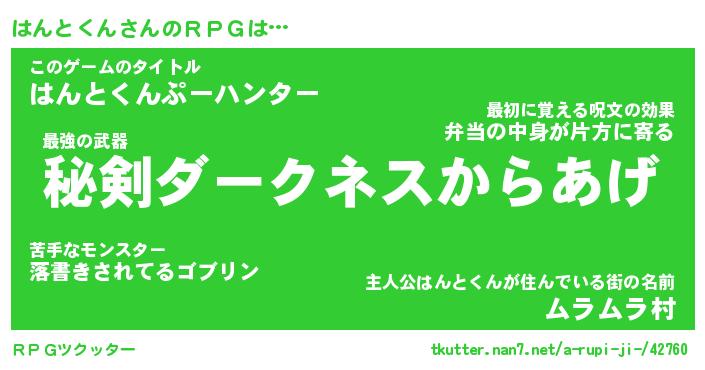 | 男性向けラノベタイトル風あだ名 | 『はんとくんの憂鬱』 |