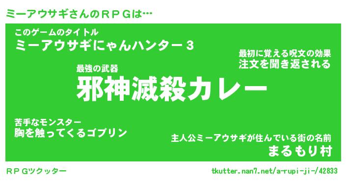 | 男性向けラノベタイトル風あだ名 | 『ミーアウサギアートオンライン』 |