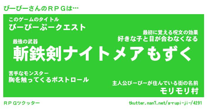 | 男性向けラノベタイトル風あだ名 | 『びーぴーの憂鬱』 |