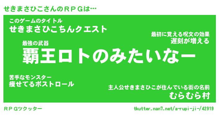 | 伝説のあだ名 | 『封印されし竜騎士せきまさひこ』 |