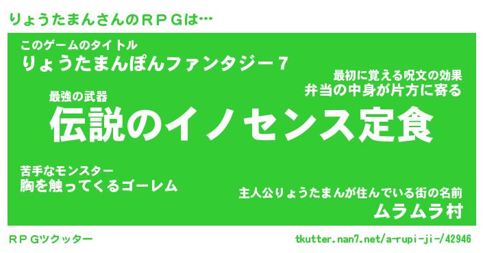 | 男性向けラノベタイトル風あだ名 | 『りょうたまんの憂鬱』 |