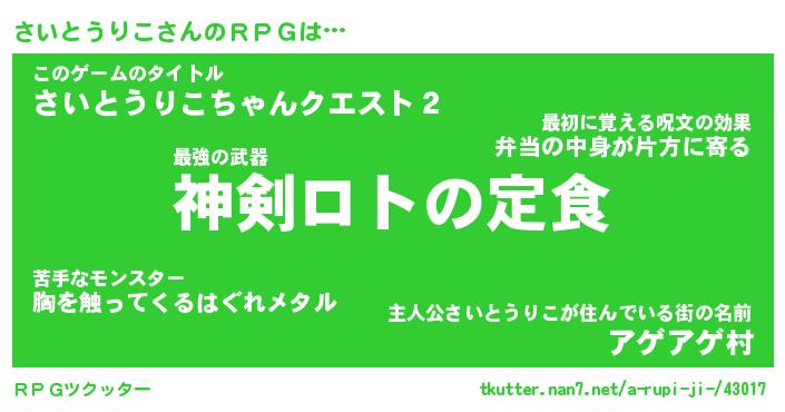 | 料理風あだ名 | 『節約★さいとうりこと油揚げの玉子丼』 |