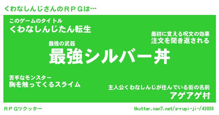 | 料理風あだ名 | 『節約★くわなしんじと油揚げの玉子丼』 |