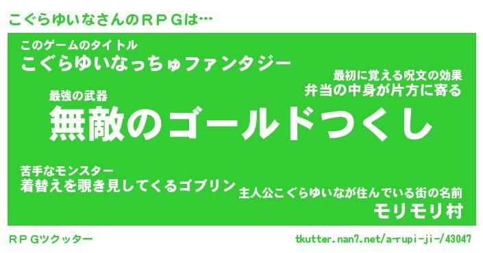 | 伝説のあだ名 | 『不死鳥の傭兵こぐらゆいな』 |