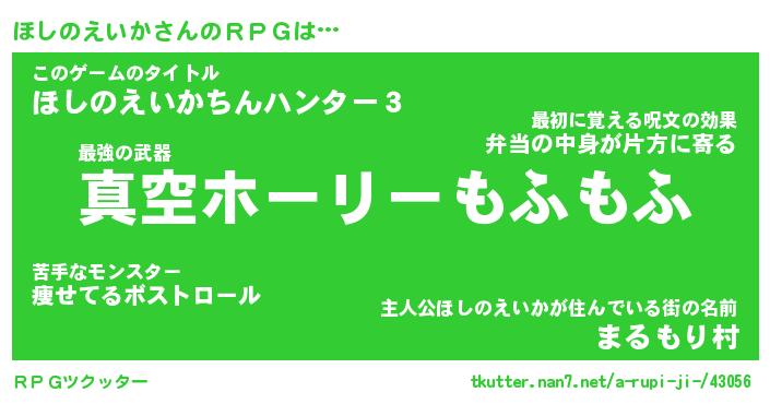 | 伝説のあだ名 | 『封印されし傭兵ほしのえいか』 |