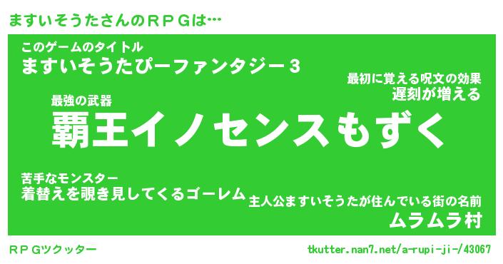 | 伝説のあだ名 | 『封印されしスナイパーますいそうた』 |