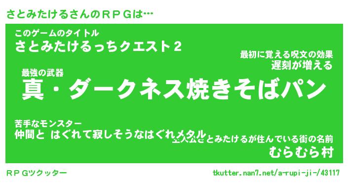 | 伝説のあだ名 | 『封印されし傭兵さとみたける』 |