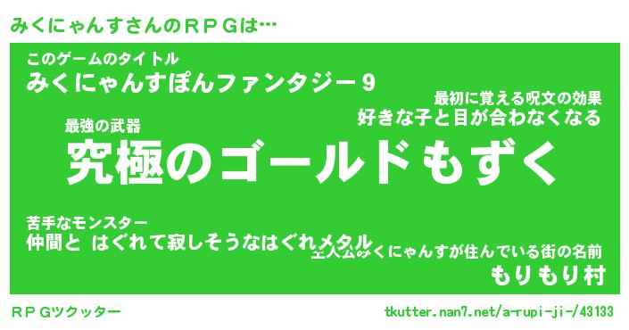 | ヒーロー風カッコイイあだ名 | 『スーパーミクニャンス』『幻影騎士ミク』 |