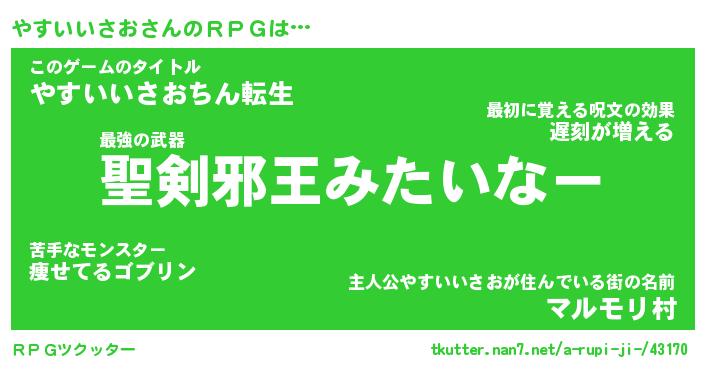| 男性向けラノベタイトル風あだ名 | 『やすいいさおの憂鬱』 |