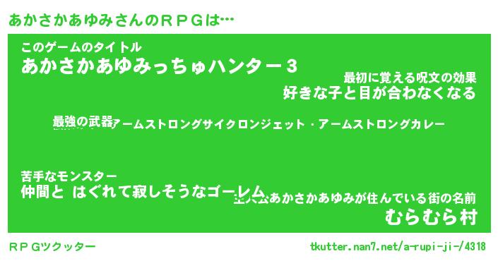 | ヒーロー風カッコイイあだ名 | 『スーパーアカサカアユミ』 |