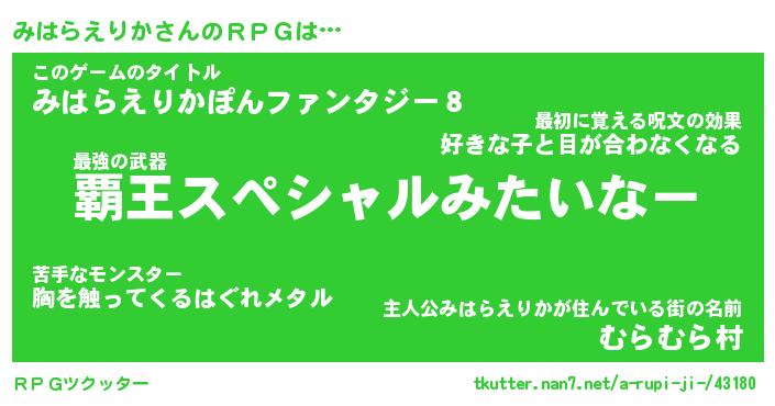 | 伝説のあだ名 | 『封印されし竜騎士みはらえりか』 |