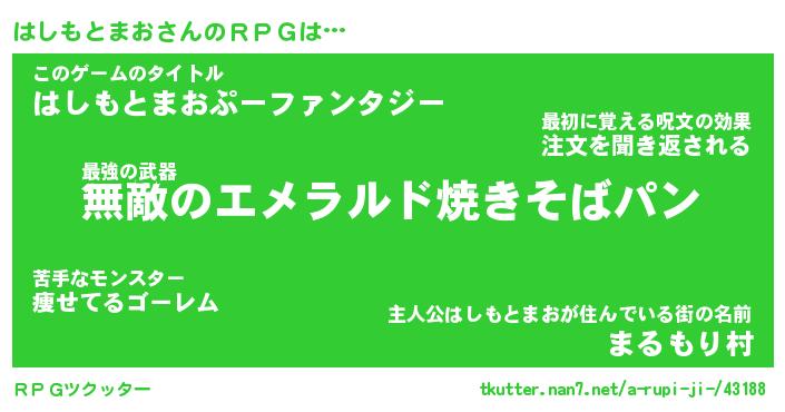 | 伝説のあだ名 | 『封印されしスナイパーはしもとまお』 |
