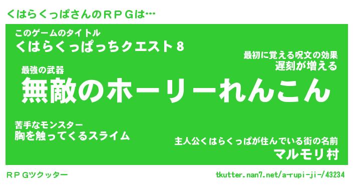 | 女子向けラノベタイトル風あだ名 | 『くはらくっぱ姫と円卓の騎士』 |