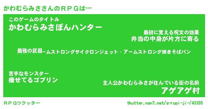 | 伝説のあだ名 | 『封印されし竜騎士かわむらみさ』 |