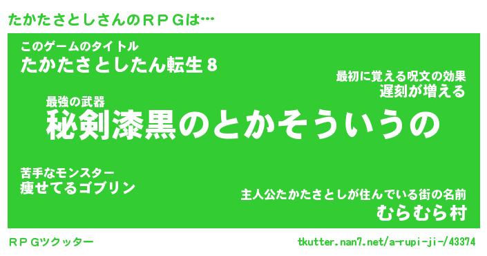 | 男性向けラノベタイトル風あだ名 | 『たかたさとしの憂鬱』 |