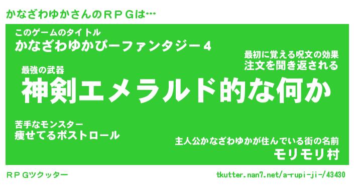 | ヒーロー風カッコイイあだ名 | 『スーパーカナザワユカ』『幻影騎士カナ』 |