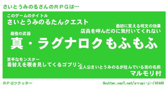 | 伝説のあだ名 | 『封印されし竜騎士さいとうみのる』 |