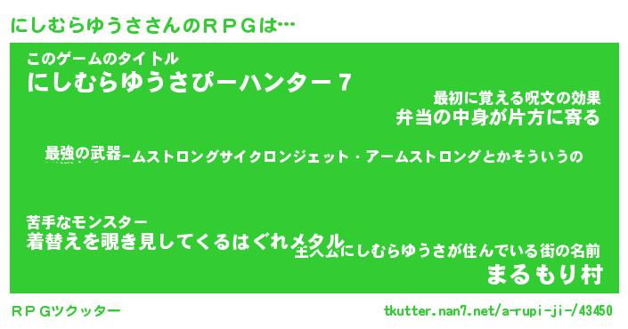 | 男性向けラノベタイトル風あだ名 | 『ニシムラユウサアートオンライン』 |