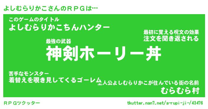 | ヒーロー風カッコイイあだ名 | 『スーパーヨシムラリカコ』 |