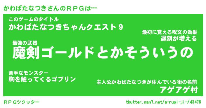 | 胡散臭い通販商品みたいなあだ名 | 『必ず成功する霊験あらたかなお札…その名も「かわばたなつき」』 |