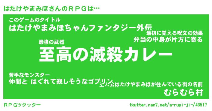 | 胡散臭い通販商品みたいなあだ名 | 『モテモテ間違いなし霊験あらたかなお札…その名も「はたけやまみほ」』 |