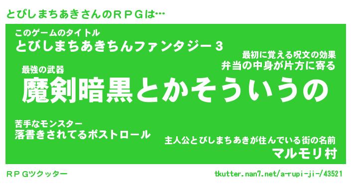 | ヒーロー風カッコイイあだ名 | 『スーパートビシマチアキ』 |