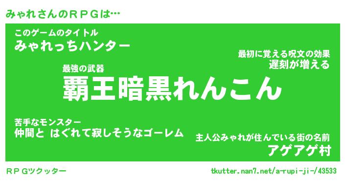 | 伝説のあだ名 | 『封印されし傭兵みゃれ』 |