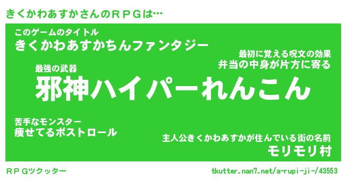 | 男性向けラノベタイトル風あだ名 | 『キクカワアスカアートオンライン』 |