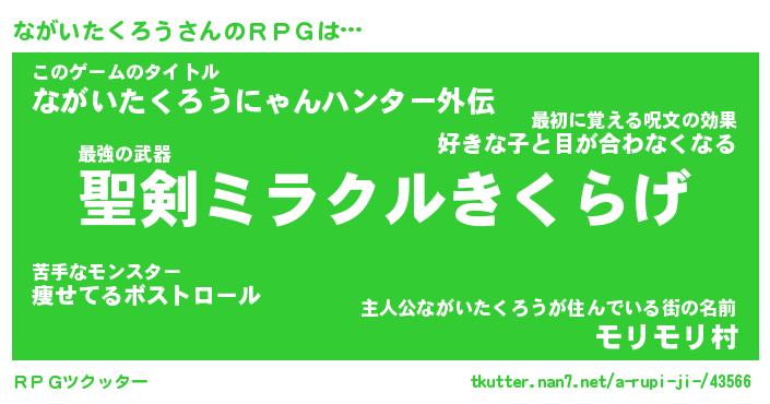 | 男性向けラノベタイトル風あだ名 | 『ながいたくろうの憂鬱』 |