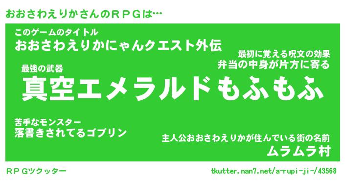 | 伝説のあだ名 | 『封印されしスナイパーおおさわえりか』 |