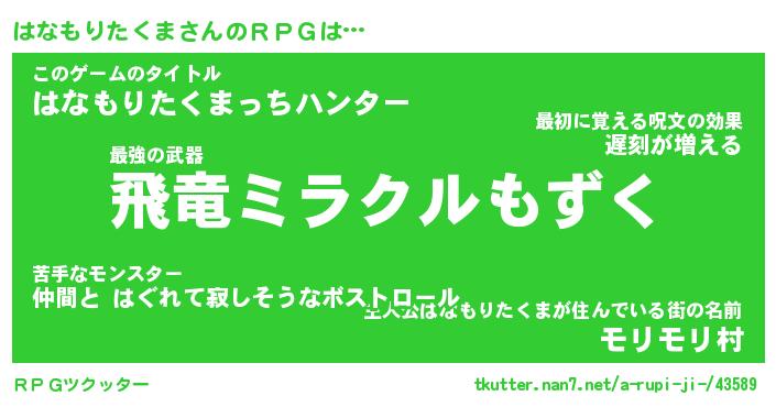 | 胡散臭い通販商品みたいなあだ名 | 『億万長者になれるブレスレット…その名も「はなもりたくま」』 |
