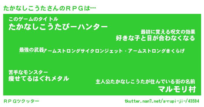 | 伝説のあだ名 | 『封印されし竜騎士たかなしこうた』 |