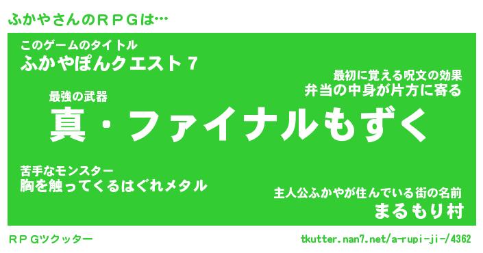 | 男性向けラノベタイトル風あだ名 | 『フカヤアートオンライン』 |