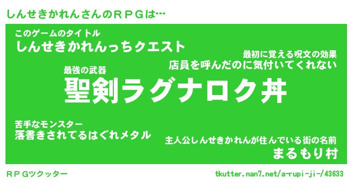 | 男性向けラノベタイトル風あだ名 | 『しんせきかれんの憂鬱』 |