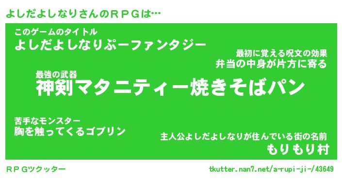 | 胡散臭い通販商品みたいなあだ名 | 『モテモテ間違いなし霊験あらたかなお札…その名も「よしだよしなり」』 |